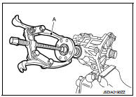 6. Remove drive pinion oil seal from the transfer case with a puller (A) (SST: KV381054S0).