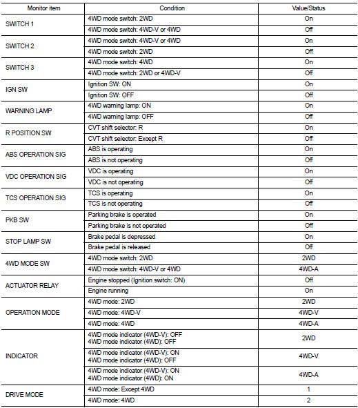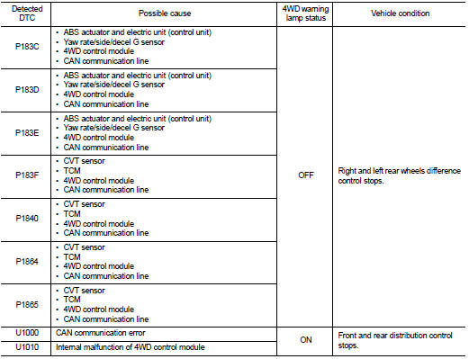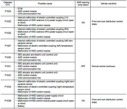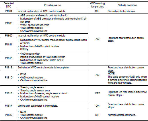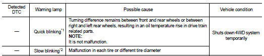 When a system malfunction occurs, the 4WD warning lamp turns ON and the 4WD control becomes 2WD state.