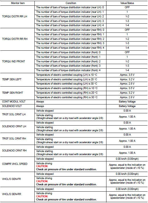 4WD system activates its protection function (shuts down 4WD system temporarily) if 4WD system detects high load continuously, the front wheel tire size differs from the rear tire size or the rear RH wheel tire size differs from the rear LH tire size. (4WD system is automatically restored if 4WD system no longer detects any overload or the tire size difference is eliminated.)