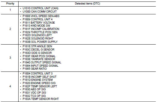 If some DTCs are displayed at the same time, perform inspections one by one based on the following priority chart.