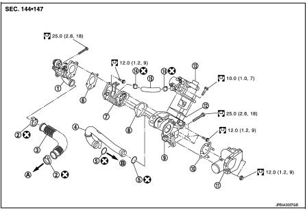 5. Remove air inlet tube assembly and air inlet tube. Refer to EM-281, "Exploded View".