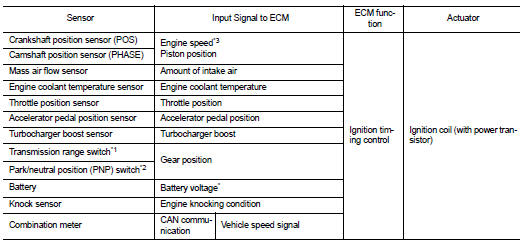 The ECM receives information such as the injection pulse width and camshaft position sensor (PHASE) signal.