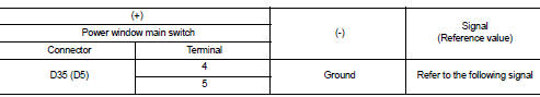 2. Check signal between power window main switch harness connector and ground with oscilloscope.