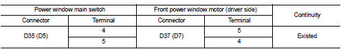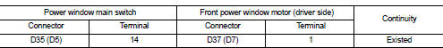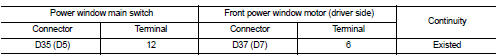 3. Check continuity between power window main switch harness connector and front power window motor (driver side) harness connector.