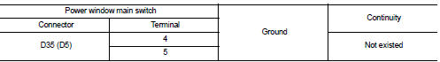 (): RHD models Is the inspection result normal? YES >> Replace power window main switch.