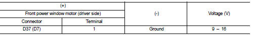 3. Check voltage between front power window motor (driver side) harness connector and ground.