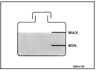 • Check that the reservoir tank engine coolant level is within the “MIN” to “MAX” when the engine is cool.
