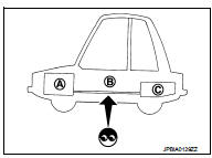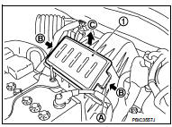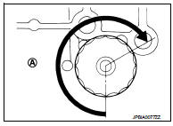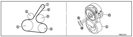 Check that the indicator (C) (notch on fixed side) of drive belt auto-tensioner is within the possible use range (A) in the figure.