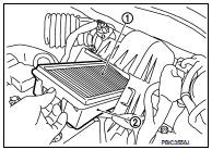 2. Remove air duct (between air cleaner cover assembly and turbocharger), air cleaner cover assembly and air cleaner body assembly. Refer to EM-26, "Exploded View".