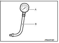 3. Install oil pressure gauge [SST: ST25051001] (A) and hose [SST: ST25052000] (B).
