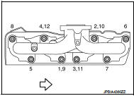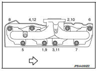 2. Install exhaust manifold with the following procedure: a. Tighten nuts in numerical order as shown in the figure.