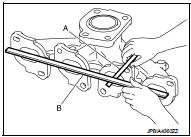 • Using feeler gauge (A) and straightedge (B), check the surface distortion