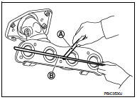 • Using feeler gauge (A) and straightedge (B), check the surface distortion of exhaust manifold mating surface in each exhaust port and entire part.