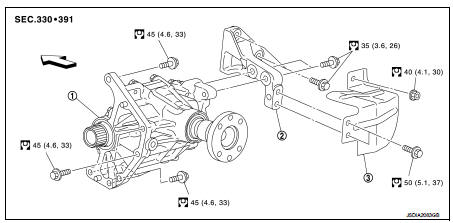 1. Separate the rear propeller shaft. Refer to DLN-121, "Removal and