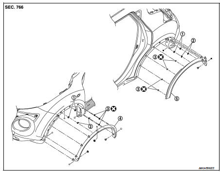 • When installing rear fillet molding, check that blind clips and pawls are securely fitted in panel holes on body, and then press them in.