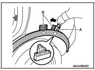 3. Using remover tool (A), disengage the clips from rear fillet molding by starting from rear side.