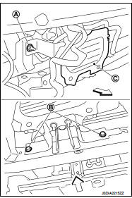 8. Remove CVT fluid cooler (with brackets) (C) from the vehicle.