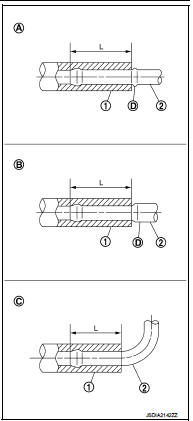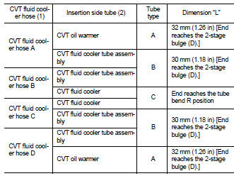 - Insert CVT fluid cooler hose according to dimension “L” described below.