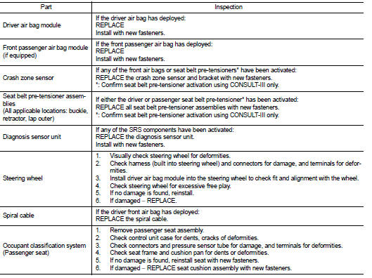 Replace any SRS components showing visible signs of damage. (dents, cracks and
