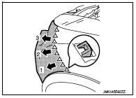 3. Remove front fillet molding front side. Refer toEXT-26, "FRONT FILLET MOLDING : Removal and Installation".