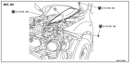 1. Remove front bumper fascia. Refer to EXT-13, "Removal and Installation".