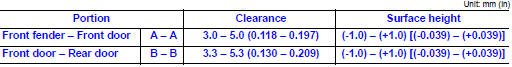 6. Raise front door at rear end to adjust clearance of the front door according to the fitting standard dimension.