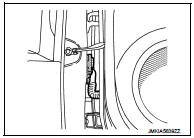 1. Remove front fender. Refer to DLK-450, "Removal and Installation".
