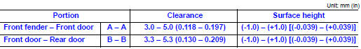 6. Raise front door at rear end to adjust clearance of the front door according to the fitting standard dimension.