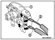 4. Disengage lock holder (1), and then separate key rod (3) from door lock assembly (2).(Driver side)