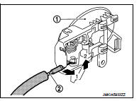 1. Remove inside handle. Refer to DLK-474, "INSIDE HANDLE : Removal and Installation".