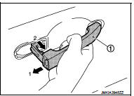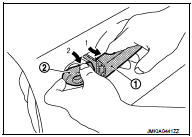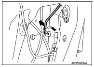 3. Disengage lock holder (1), and then separate key rod (3) from door lock assembly (2).(Driver side)