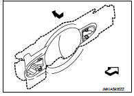 1. Remove front door finisher. Refer to INT-13, "Removal and Installation".