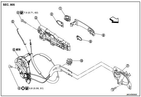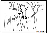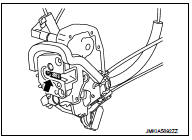4. Remove outside handle bracket. Refer to DLK-590, "OUTSIDE HANDLE : Removal and Installation".