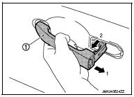 4. Disengage lock holder (1), and then separate key rod (3) from door lock assembly (2).(Driver side)