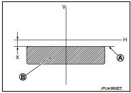 4. Adjust the cutoff line height (A) with the aiming adjustment screw so that the distance (X) between the horizontal center line of front fog lamp (H) and (A) becomes 200 mm (7.87 in).
