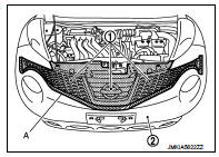 4. Remove front side grille (LH and RH) upper fixing clips (A).