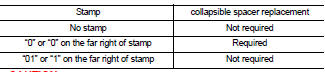 • The following table shows if collapsible spacer replacement is needed before replacing front oil seal.