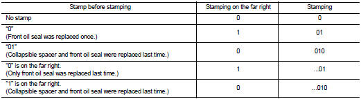 • After replacing front oil seal, make a stamping on the stamping point in accordance with the table below in order to identify replacement frequency.