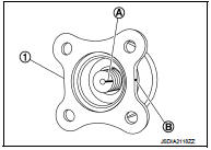 3. Align the matching mark (B) of drive pinion with the matching mark (A) of companion flange (1), and then install the companion flange (1).