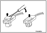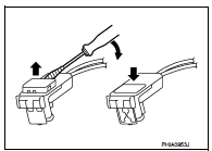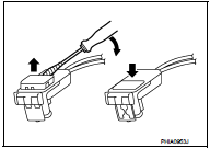 2. Disconnect occupant detection unit harness connector. (Passenger seat only) 3. Remove harness fixing clamps of seat belt buckle and connector fixing clip that are installed on seat.