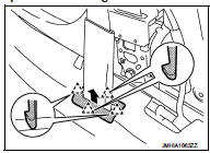 2. Remove center pillar lower garnish. Refer to INT-20, "CENTER PILLAR LOWER GARNISH : Removal and Installation".