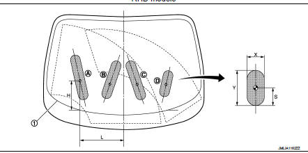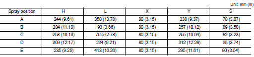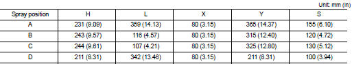 Washer Nozzle Spray Position Adjustment Adjust spray positions to match the positions shown in the figure.