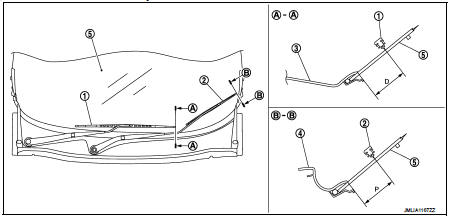 3. Adjust front wiper blade position. Refer to WW-76, "Adjustment".