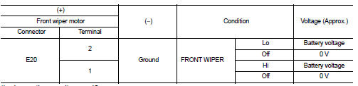 5. With operating the test item, check voltage between front wiper motor harness connector and ground.