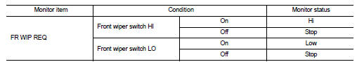 3. With operating the front wiper switch, check the status of “FR WIP REQ”.