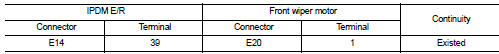 3. Check continuity between IPDM E/R harness connector and front wiper motor harness connector.