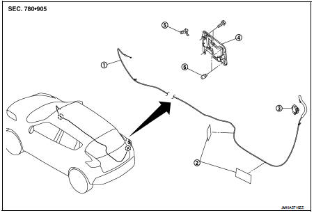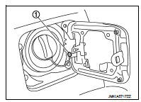 7. Remove fuel filler lid opener cable from fuel filler lid lock assembly. Refer to DLK-484, "FUEL FILLER LID LOCK : Removal and Installation".