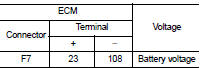 4. Check the voltage between ECM harness connector and ground.