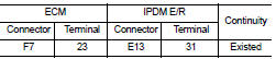 3. Check the continuity between IPDM E/R harness connector and ECM harness connector.