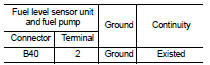 1. Check the continuity between “fuel level sensor unit and fuel pump” and ground.